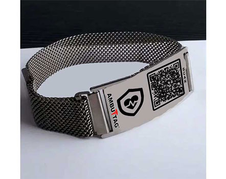 The AmbuTag⢠Bracelet combines comfort, style, and security in one essential piece of wearable safety technology. Crafted from durable stainless-steel with a stainless-steel plate, it features an engraved QR code that instantly provides first responders with life-saving medical information ā directly from your secure AmbuTag⢠profile.