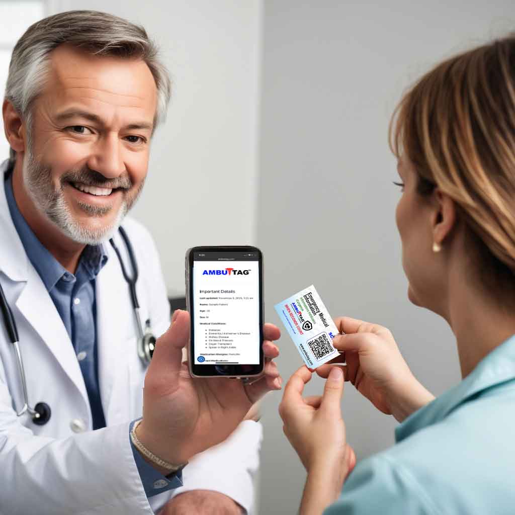 Keep life-saving information at your fingertips. The AmbuCard⢠is a durable, wallet-sized medical ID card featuring a unique QR code that connects directly to your secure medical profile.