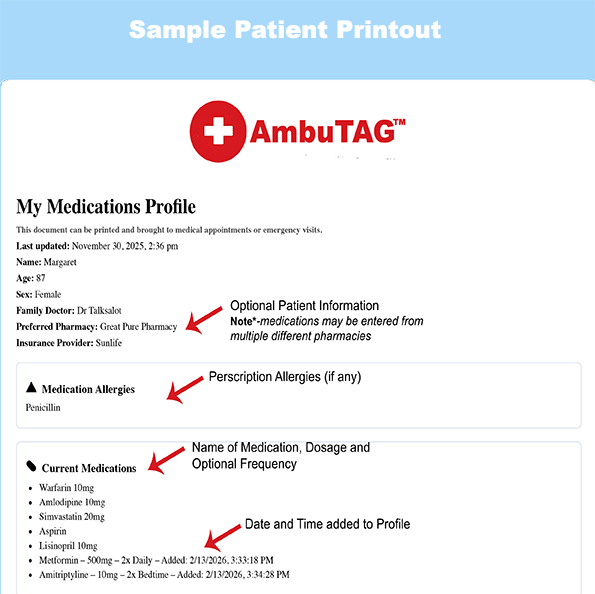 With AmbuTag™, your medication information is organized in one secure place and always available when you need it.