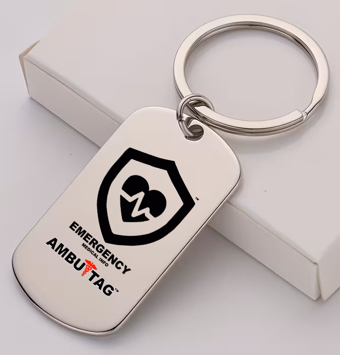 The AmbuTag™ Keychain is engineered from premium Stainless Steel and precision laser-engraved with your unique AmbuTag™ QR code — giving first responders and healthcare professionals instant, secure access to your critical medical information.
