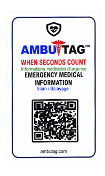 The AmbuCard™ is a durable, wallet-sized plastic card designed to make your critical medical information instantly accessible in an emergency. Each card is printed with a unique QR code that securely links to your personalized AmbuTag™ profile.