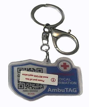 The AmbuTag™ Keychain is engineered from premium pvc and precision printed with your unique AmbuTag™ QR code — giving first responders and healthcare professionals instant, secure access to your critical medical information.